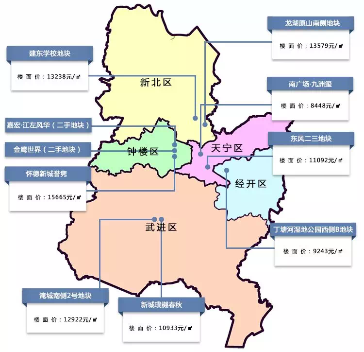接下来,再来了解一下各区域目前较高楼面单价情况,看看会不会重组未来常州楼市高价项目队伍。
