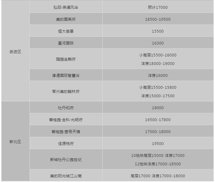 第3梯队(1.5万-2万/㎡):钟楼区6家、天宁区8家、新北区6家、武进区7家