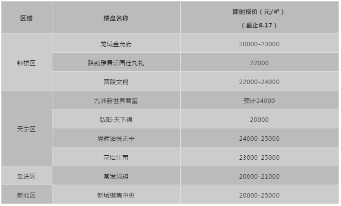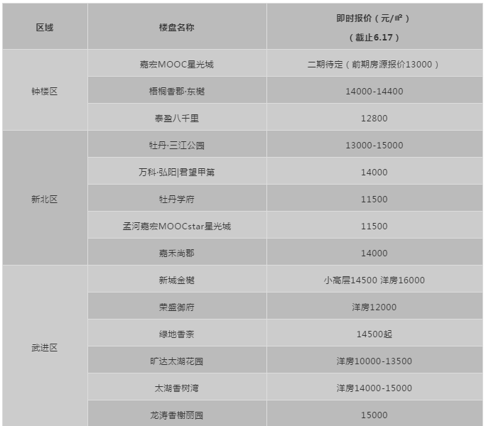 第2梯队(2万-3万/㎡):钟楼区3家、天宁区4家、新北区1家、武进区1家