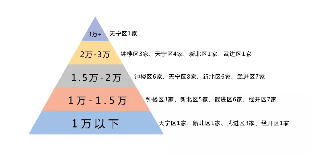 第5梯队(1万/㎡以下):天宁区1家、新北区1家、武进区3家、经开区1家