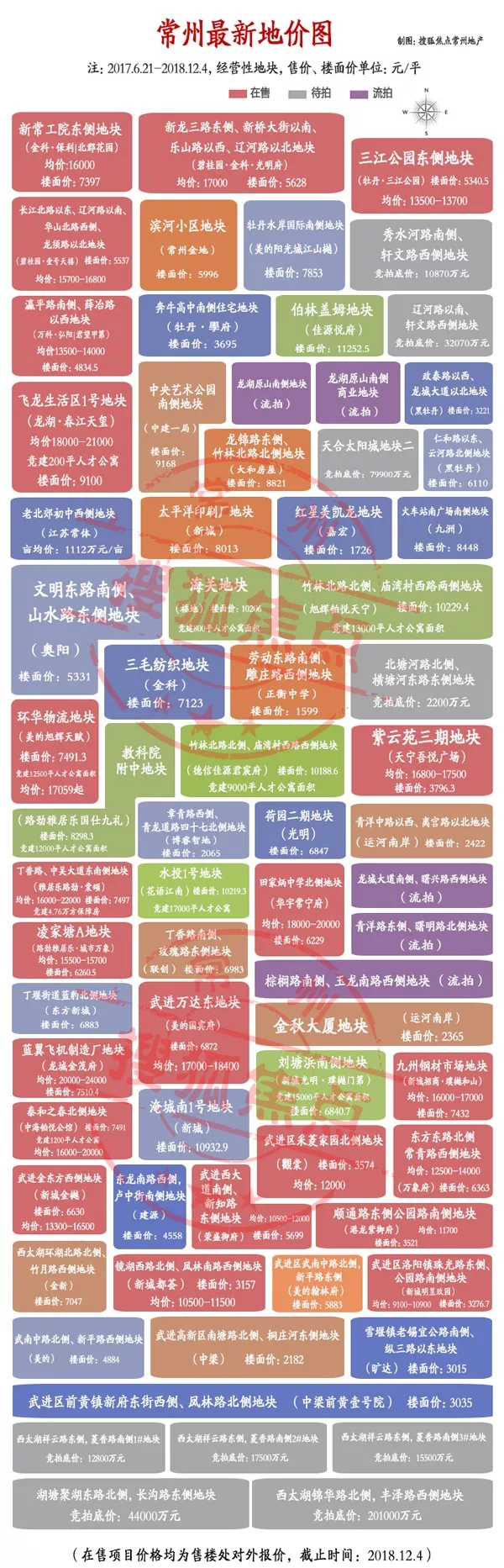 近两年,几乎每一块常州的经营性地块的出让都特别引人注目,究其原因还是地价决定了房价。那么基于这一点,我们来研究一下2017年以来常州各出让地块与房价的关系。