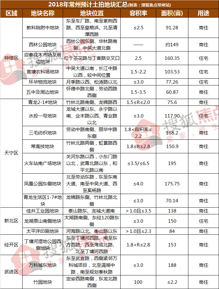 在纳入统计的这5宗地块来看,教科院附中地块在上半年入市的可能性略大,因为该地块规划条件批后方案已于2017年10月在规划局网站公示。此外,在去年常州市区16宗优质地块中,钟楼区仅2宗地块出让,想必“大招”应该留在今年了。