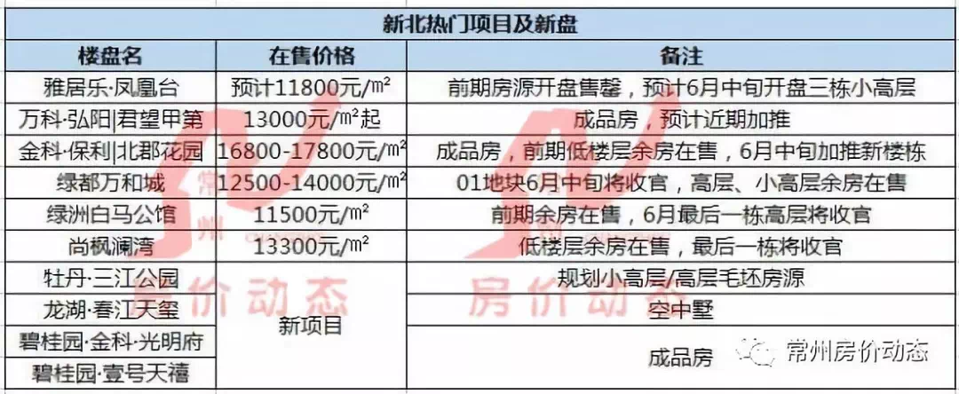 武进,一直也是供应大户,不管是在售项目,还是即将上市的新项目,数量都是比较可观的。在售项目中,新城桃李郡5月多次加推,包括洋房和高层;常发、中梁等纷纷加推,美的·国宾府首开洋房售罄,本月预计加推高层。经开区港龙、蔚蓝天地等均有新房源即将入市。