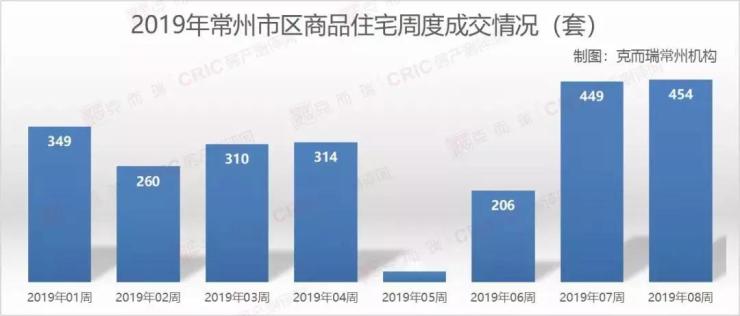 从上图可知,2019年前2个月,常州楼市成交一般,但是从春节假期之后的2月中开始,常州楼市呈现明显“复苏”的态势。其中第7周商品住宅成交449套,第8周成交454套。从趋势上来看,常州楼市逐步趋稳且呈现向上走的态势。