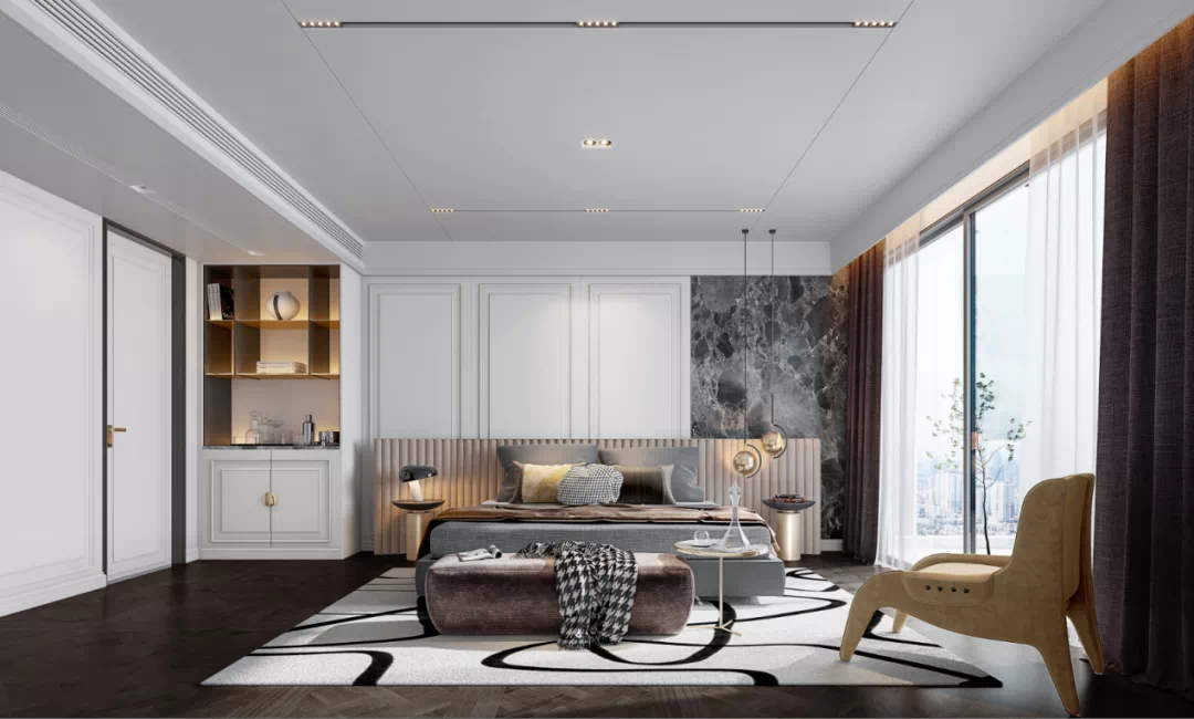 天翌针对业主高定私享生活,对精装品质感的把控尤为严格,从硬核酒店式星级主卧就足以见其用心。约48m²星级主卧,避开了传统户型标准化的套路,可专设酒店式高奢mini吧,让传统生活与时尚潮流产生碰撞,兼顾精致、时尚与实用的同时,拓展了居者的兴趣维度,尊享非凡生活奢度。