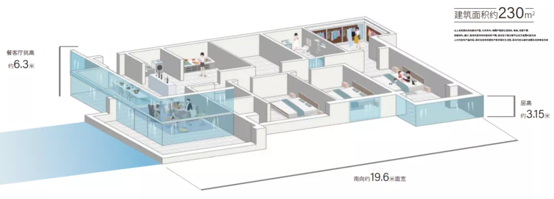 空间不止于宽,更是成长型家庭生活场。奢面宽、多选定制化中西厨空间,足够宽敞的料理空间与匹配人物的恢弘尺度,是建面约215-230m²天空墅的一大亮点。