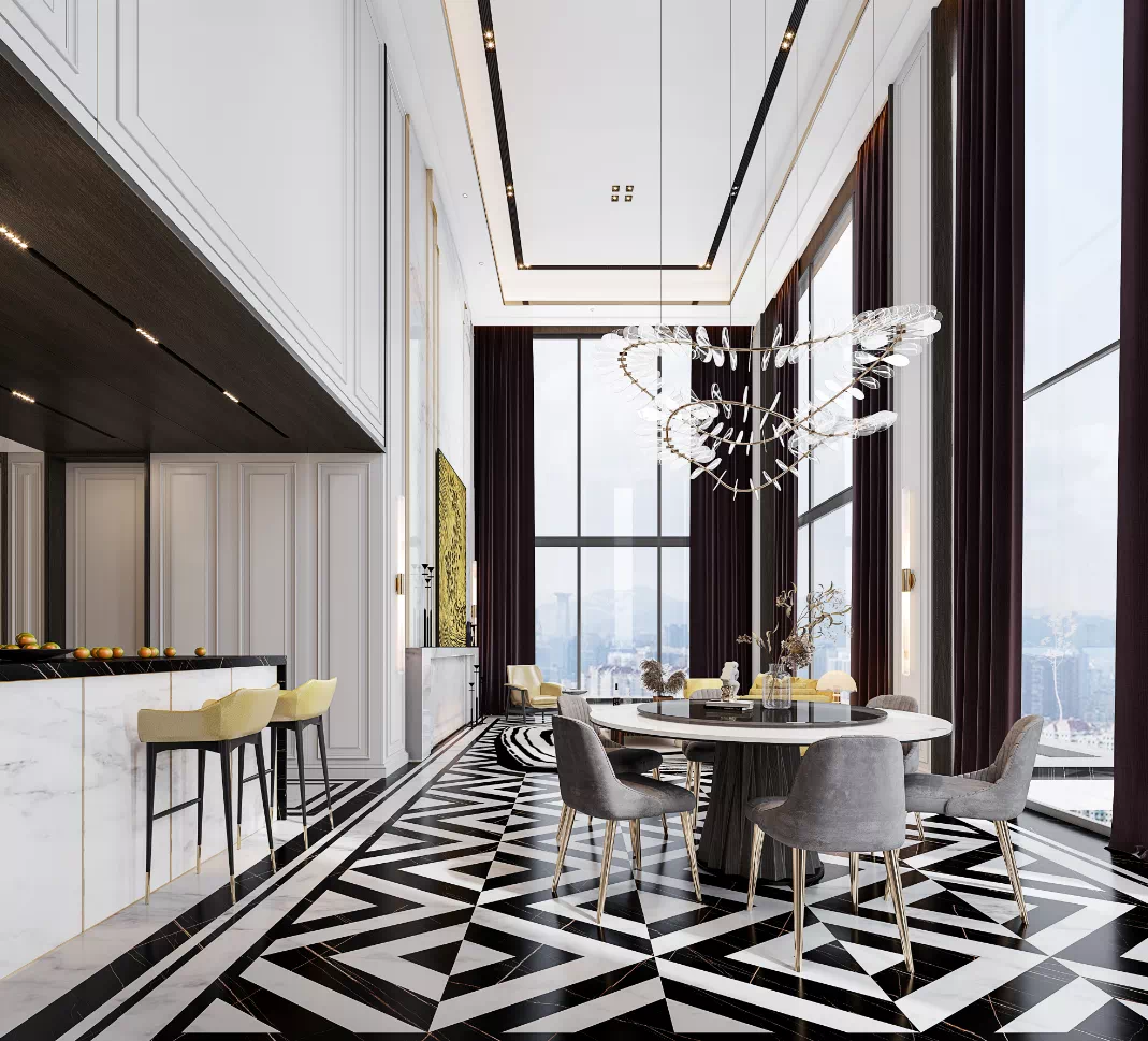 天翌不仅是龙城争藏红盘,更是创新生活缔造者。天翌时刻考虑人居幸福感,致力于倾筑国内少见的家族藏品,将生活格局放大,打造约6.3米挑高客餐厅,向上打开生活想象空间,只为塑造家庭高定中心场域。这里既可视为奢华会客厅,亦可成为家庭娱乐场,即兴之处,随时随地进行一场室内篮球对抗。