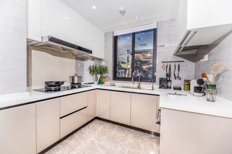 作为美食主场,厨房亦是考量点滴,台面滴水线设计、日本进口TOTO纳米自洁面板、抽拉式焊高拉篮、橱柜感应灯条……无不更具人性化,要知道,这正是集新城13年华装大成之作。