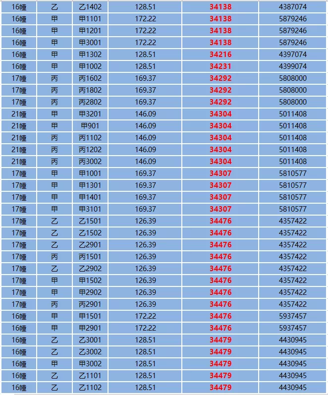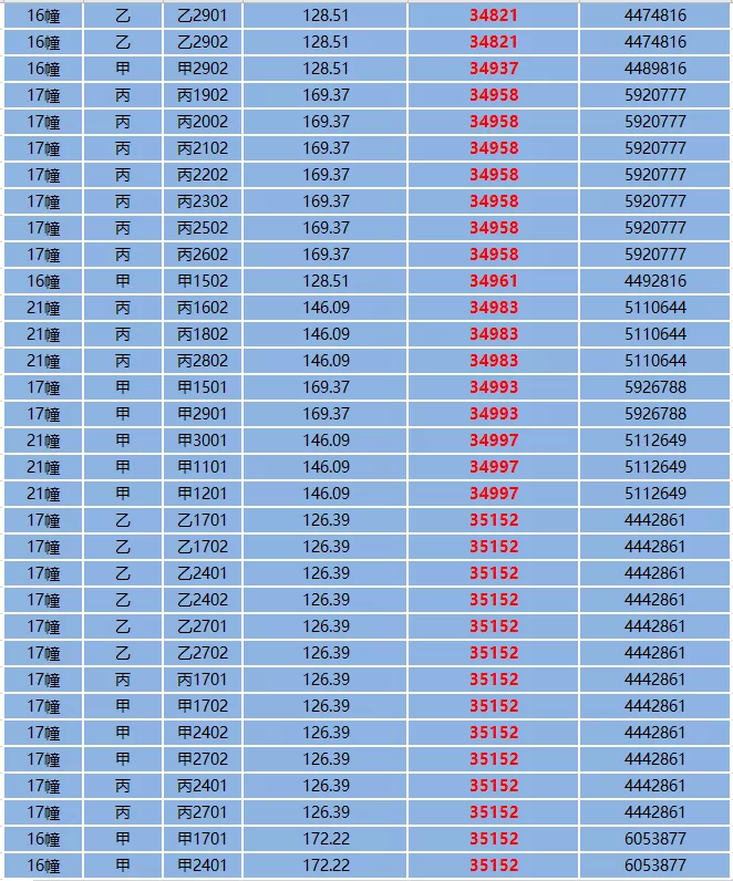 从备案价格来看,即将开盘的房源,整体备案价格为30297-36383元/㎡,备案均价约33915元/㎡。16幢推出136套,主要集中在甲乙两个单元(丙单元为回购房),总高34层;17幢共204套,分甲乙丙三个单元,总高34层;21幢共68套对外出售,主要集中在甲单元和丙单元,总高34层。