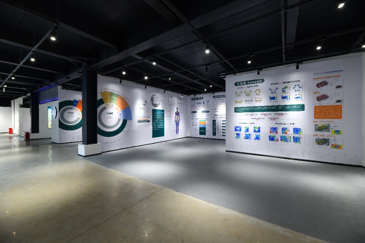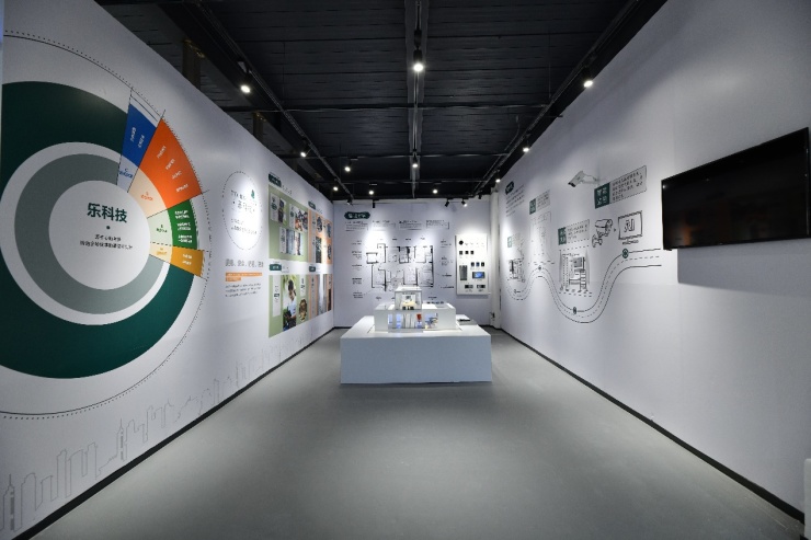 一层有位于室内的产品实验室和工程做法实验室,其中产品实验室涵盖了乐分子、新材料新工艺、部品、户型模拟系统1:1活动板房等9大研究区域,工程做法实验室包含工艺工法、土建工法等展示区;二层是精装样板房展示区,目前这个区域一共有13个标准化及创意样板房,包括标准层公共区域、入户大堂、交付样板、户型模拟系统1:1活动板房等;室外则是小区的室外景观研究区。