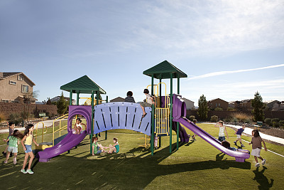 在楼下的游乐场里相遇,含饴弄孙,岂不美哉