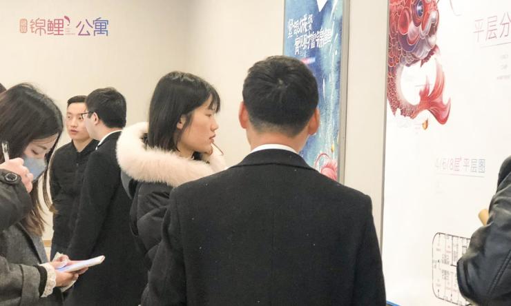 寻鲤人有序签到,置业顾问热情接待,营销中心内人潮涌动。