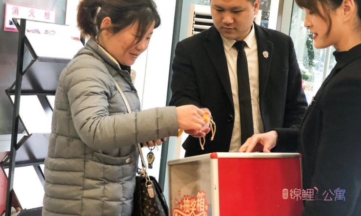 9点58分,现场气氛达到高潮。参与“龙城锦鲤意外走失,重金悬赏寻鲤人”的客户们满怀期待地抽取幸运锦囊,收获了属于自己的好运礼品,更有锦鲤宠儿获得黄金锦鲤吊坠。
