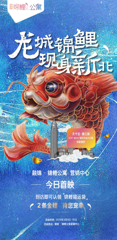 春雨绵绵,万物复苏,一切都是生机勃勃的景象。2019年3月9日,融锦·锦鲤公寓营销中心在万众瞩目下解开了神秘面纱,龙城的寻鲤人齐聚在此参与“龙城锦鲤意外走失,重金悬赏寻鲤人”活动,营销中心现场人头攒动,热情高涨。