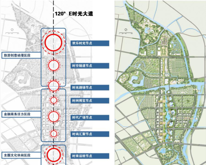 从功能布局看,常州金融商务区分金融核心区、金融拓展区、综合拓展区及生态社区四个功能片区,依次设置春夏秋冬四个下沉广场。从而在东经120°轴线上形成欢乐时光、时空隧道、时光剧场、时间博览、时代广场、时尚汇聚、时来运转七个节点。每个节点都有自己的主题,其中,时代广场是金融与生态结合的综合节点,具有金融办公、总部经济、交易中心、国际论坛等功能,是高端金融商务和高层次人才、名流精英的盛宴舞台,是名副其实的财富广场,未来常州的金融中心。