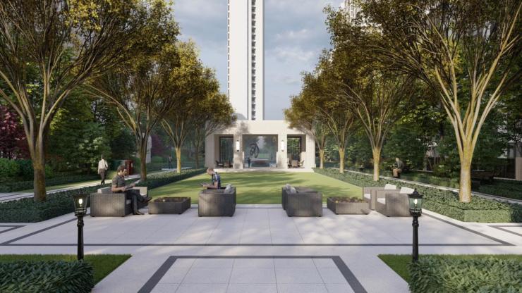景观中轴作为一个社区核心的部分,也是一个园林的精粹所在。庄重的直线搭配艺术浓郁的景致,严谨中带着浪漫的气息,赋予居者集围合感、归属感于一体的归家体验。