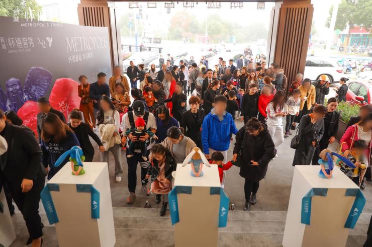 开展当天,新城怀德誉隽项目总陈总、稀奇工作室品牌总监边磊总、新城怀德誉隽营销负责人盛总、常州电视台知名主持人常丽杰等……共同出席了展览开放盛典并致辞剪彩,项目准业主代表、各界媒体嘉宾、艺术大咖与慕名而来的常州市民,济济一堂,齐聚怀德誉隽售楼处,争睹高级艺术作品的风采。