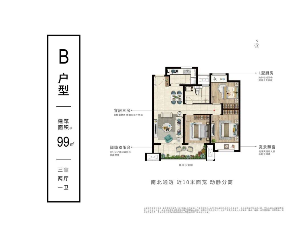 都会里建筑面积约99㎡高层户型,宜居三房高性能舒居,南北通透,动静分离,近10米面宽,约9.5米阔绰阳台,恰到好处的尺度,匠心研磨的空间,邂逅精致归心生活的温暖印迹,实现家人优居梦想。