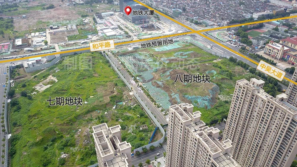 由于八期地处和平路与中吴大道交汇处,是地铁1号线“茶山站”站口,还有地铁4号线规划,因此其中还预留了地铁用地。从航拍可见,目前已初具雏形。八期地块一路之隔即是常州地铁大厦,目前建造完成。据称,地铁大厦也有商业设施。