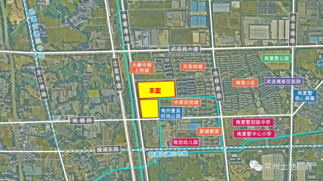 在教育资源上,地块东侧为大学城板块,常州轻工学院、常州机电学院等高等院校聚集,周边有鸣凰幼儿园、常州大学附属小学、鸣凰中心小学、淹城初级中学、武进区鸣凰中学、卢家巷实验学校等优质教育资源。周边成熟的小区聚集,商圈环伺,客流稳定,坐享庞大人口红利。