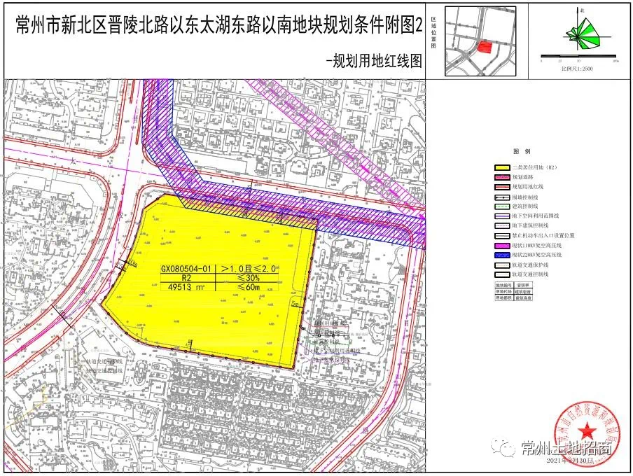 地块位于常州市新北区三井街道,晋陵北路以东、太湖东路以南、天目山路以西。出让总面积74亩。