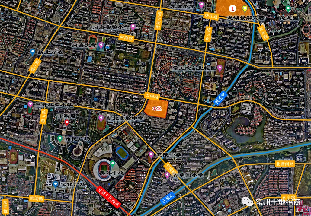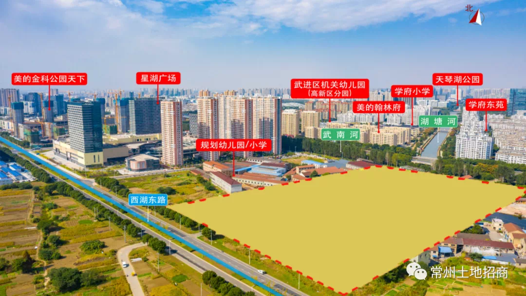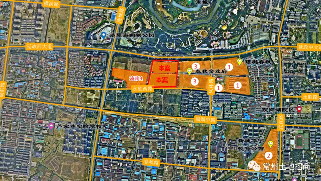 地块周边新北万达广场,江南环球港,丰臣国际广场等多个商圈环绕,在教育配套上,地块西侧紧靠规划中的三井第二实验小学和幼儿园,周边有常州市新北区泰山实验学校初中部、常州市河海中学。
