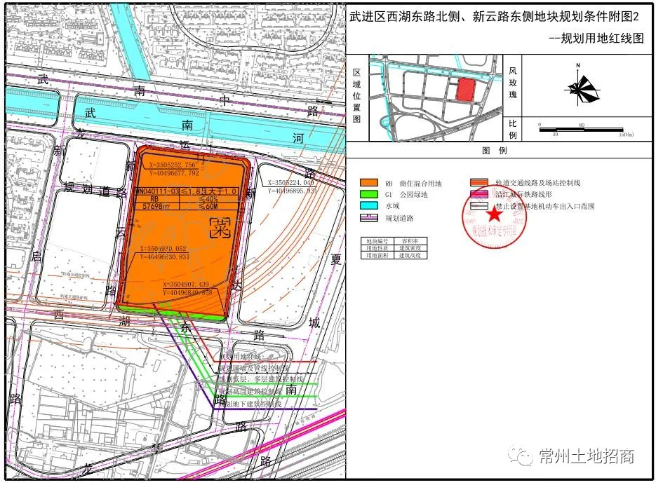 地块位于武进区淹城南路东侧、龙颜路南侧、新仪路西侧。出让总面积150亩。