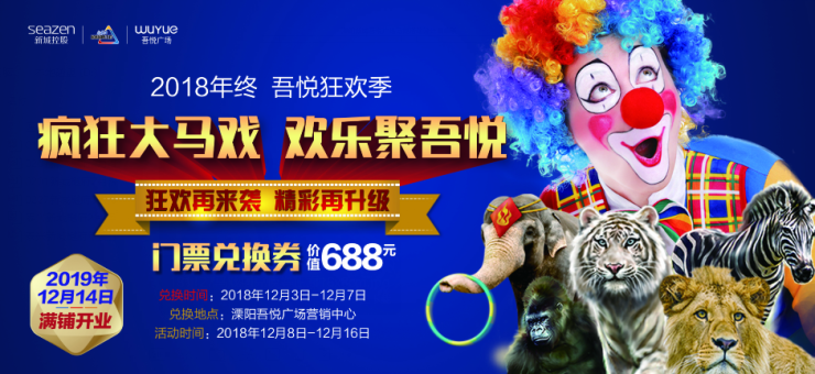 其他途径:扫描关注溧阳新城吾悦广场官方微信号,留言“吾悦疯狂大马戏+姓名+手机号码”即有机会获取门票。