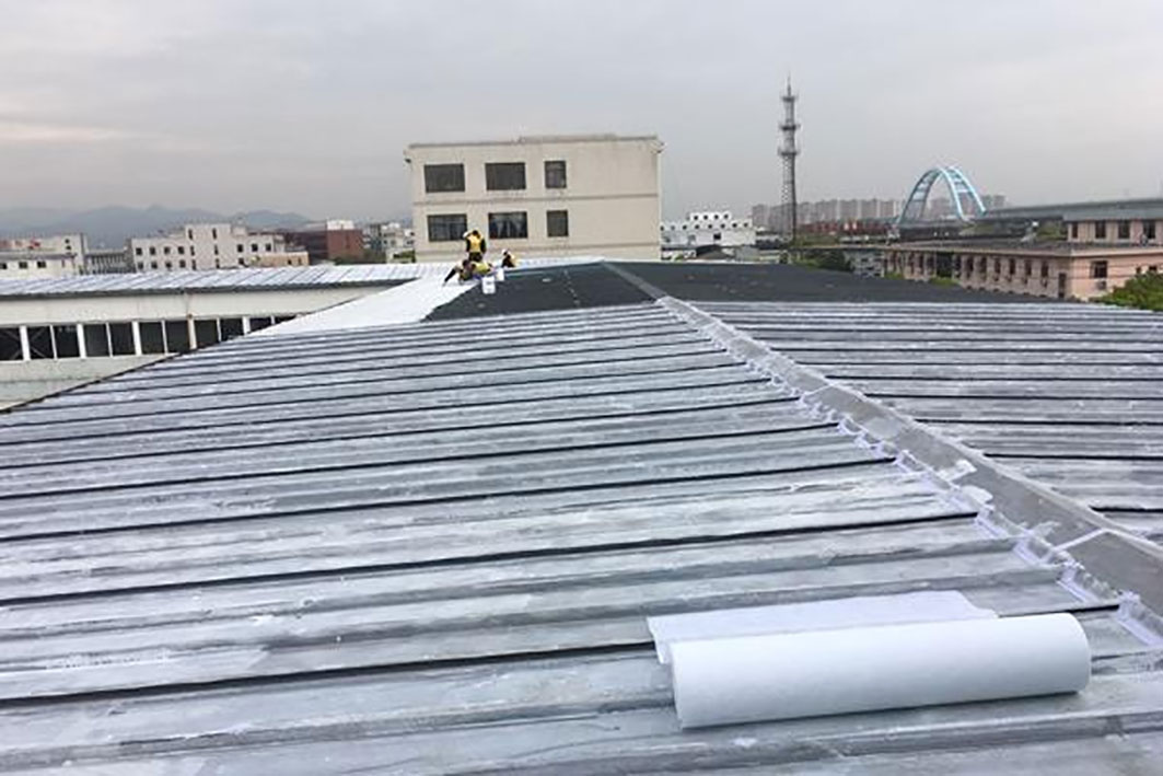 1.基层处理:凹凸不平及裂缝处须先找平渗漏处,进行堵漏处理,预先处理天沟底部两侧、接头、咬口需要用聚氨酯密封胶嵌缝隙,再用涂料抹平,做到边口弧顺圆滑不积水。