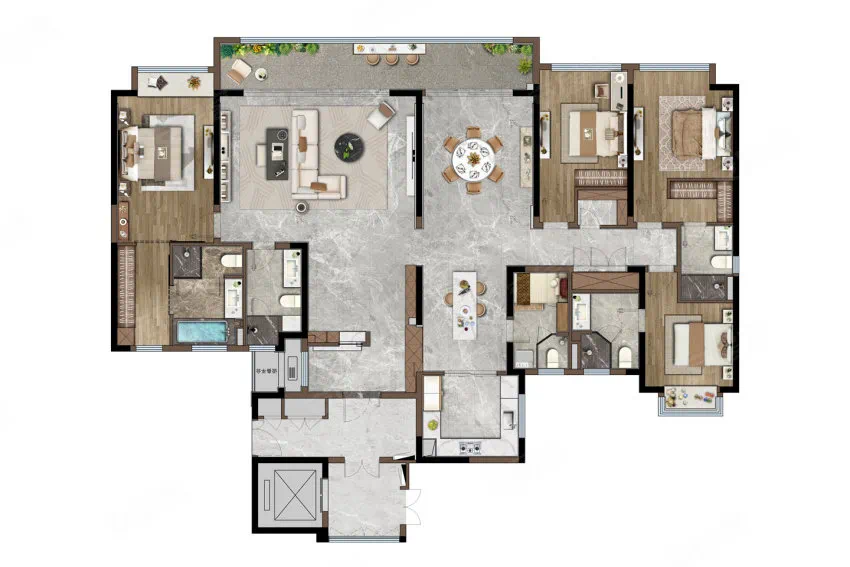 而此次即将入市的276㎡户型,餐客厅一体设计,让空间尺度更开阔。