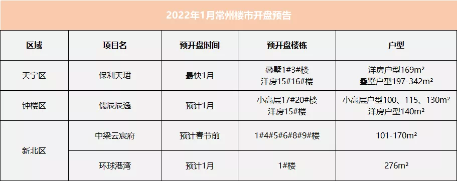 值得注意的是,1月份常州主城将有4个新项目扎堆入市,其中三个纯新盘或将赶在农历春节前抢收一波客户,主要为环球港湾、儒辰辰逸、保利天珺、中梁云宸府。