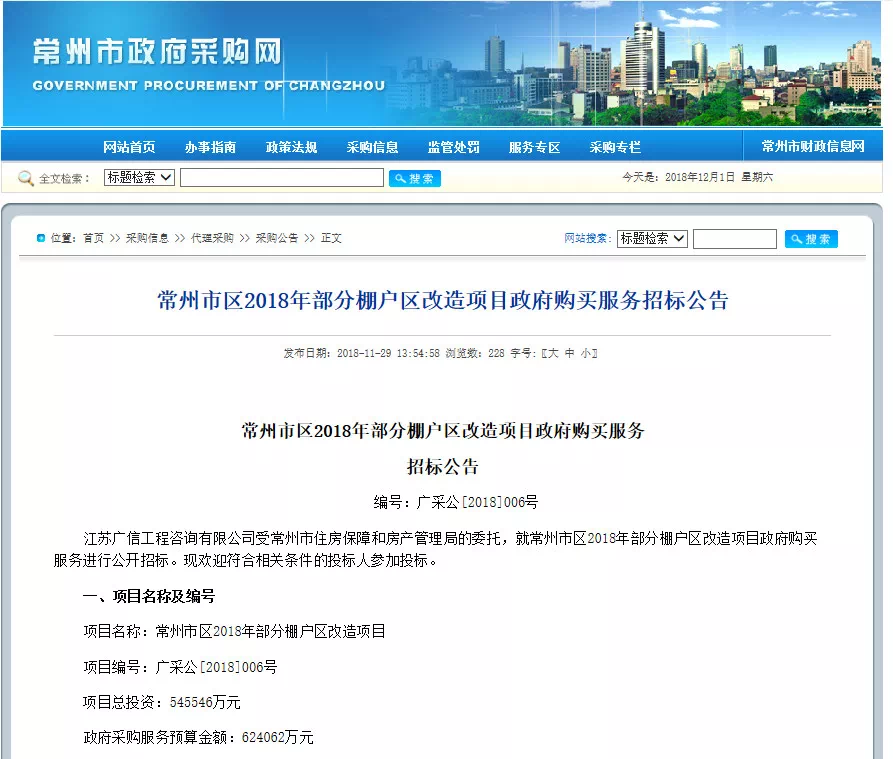 拆迁改造是民生大事!近日,小编从常州市政府采购网获悉常州天宁区和钟楼区部分地区将进行棚户区拆迁改造.