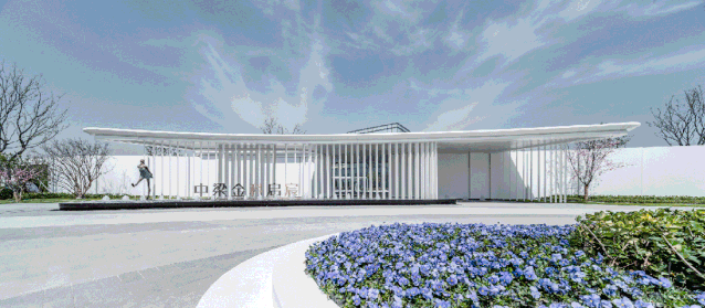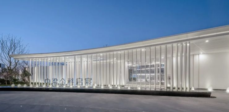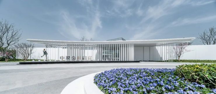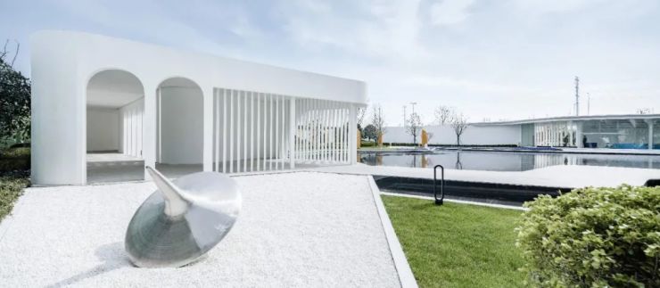 干净的纯白空间结合弧形玻璃,专属的接待前厅仿佛像一片云朵悠然飘在水上,形成一个理想的交流空间。
