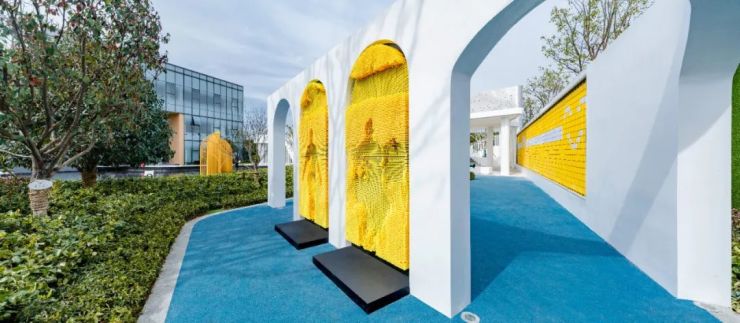 后场营造现代舒适感的轻松氛围,如梦如幻的互动艺术装置、红邮筒、情怀基地等的运用打造灵动、多变的景观空间。
