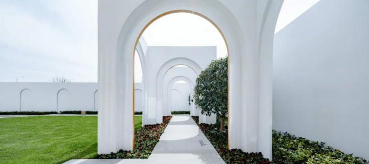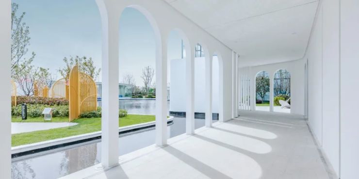 五道浪漫白色拱门,光影与异形艺术优质结合,移步异景,增加了路径的轻盈、梦幻之感,感受一场归家的艺术之旅。