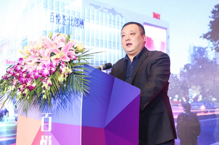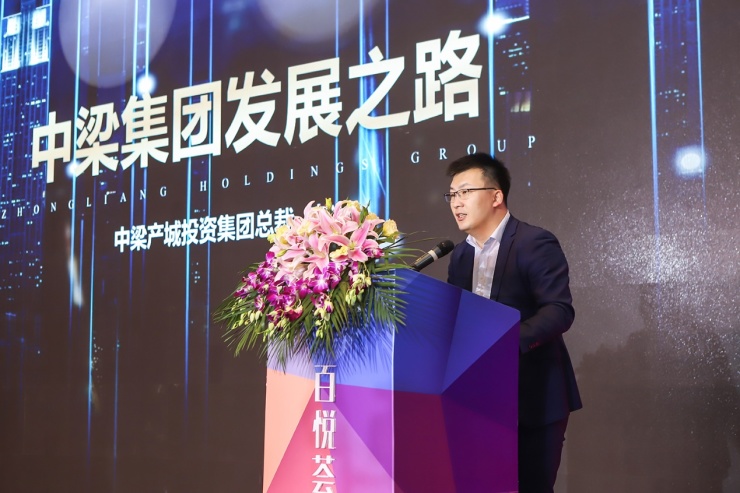 中梁产城投资集团总裁李兴致欢迎词。他表示,作为全国地产综合实力20强开发企业,中梁控股将以二十余年的匠心品质和行业先进的项目运营经验,聚焦融合百悦荟项目的地铁公交交通枢纽价值与滨湖水岸生态价值,为城市赋能,打造武进南部一站式消费新磁极。