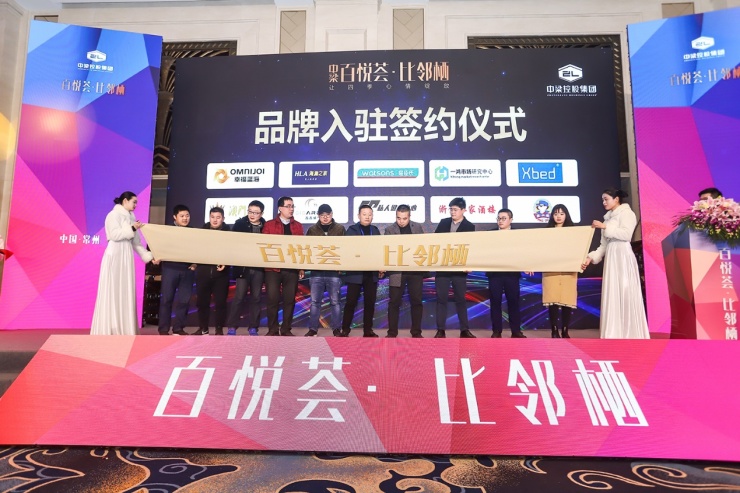 随后幸福蓝海、屈臣氏、一鸿集市、搜床科技无人酒店、澳门豆捞、吉吉域公寓、FC健身、浙江人家酒楼、波卡猫电玩、海澜之家等众多优质品牌参与的项目签约仪式,共绘百悦荟·比邻栖的宏伟商业蓝图。活动在热烈的气氛中圆满结束。