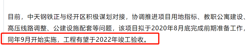 中天教育小镇项目拟于2020年8月底完成前期准备工作,同年9月开始实施,工程有望于2022年竣工验收。