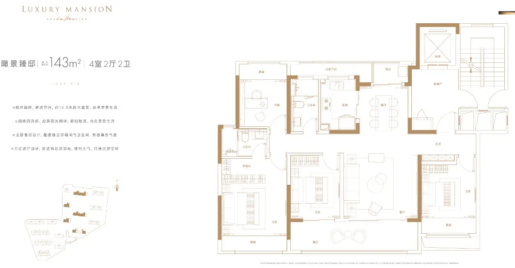 约164㎡四室两厅三卫,全明户型,南北通透,约15.8米进深空间,超高利用率,超大客厅设计,起居室与餐厅隔离,动静分区,互不干扰,双套房卧室,搭配宽阔双阳台,主卧自带一个270°的转角阳台,细节设计考量周到。