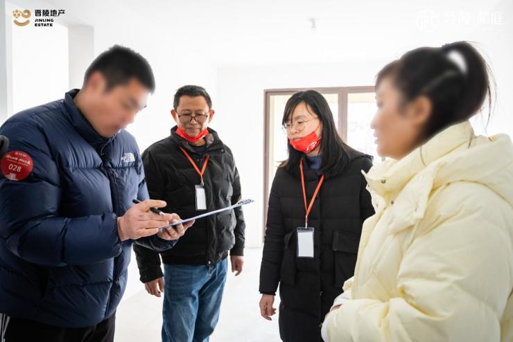 珍视每一位家人的体验,晋陵·和庭精心安排引导员以及验房师全程陪同收房,提供1vs1专属服务。验房师细心为交房前质量把关,配合业主检查水、电、门窗等相关事项,给予业主放心、舒心、暖心的优质交付体验的同时,更是悦心服务载入日常的开始。