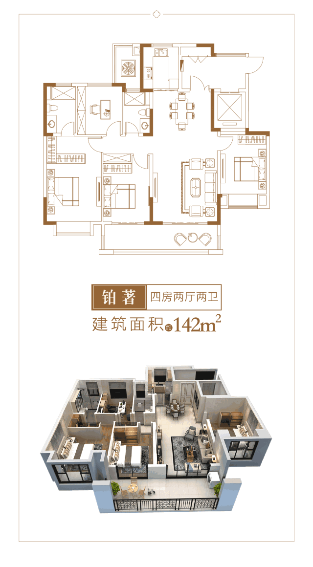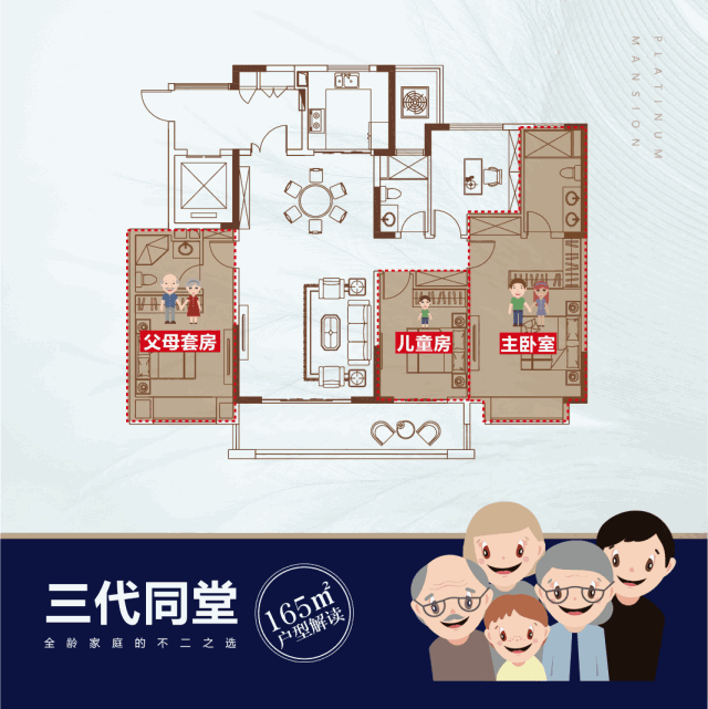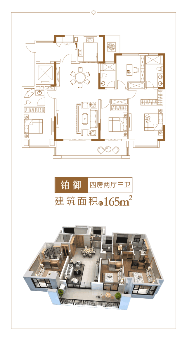 中海·铂悦公馆筑约165m²奢居平层,精研龙城家庭结构,规划四室两厅三卫室内空间,注重空间灵活性,双套房配备,满足二孩家庭及成长型家庭的空间需求。