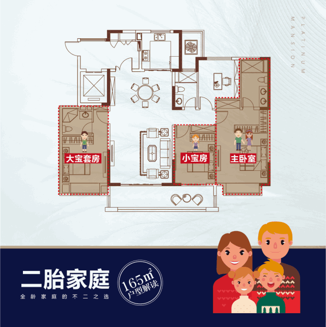 步入二胎时代,二胎家庭对于活动空间的要求有所提升,主卧面积需求同步增大,甚至要增加一个房间,四房自然是优选,同时会更加注重空间的灵活性。