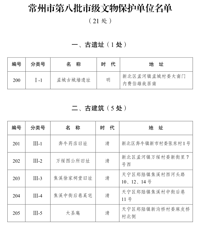常报全媒体讯 为进一步加强国家历史文化名城建设,巩固文物保护工作成果,近日,常州市人民政府公布第八批市级文物保护单位名单,共计21 处(含合并项目1处),其中武进区1处、新北区6处、天宁区13处、钟楼区1处。为配合江南水乡古镇参与联合申遗工作,将天宁区的焦溪和新北区的孟河列为了申报重点区域。