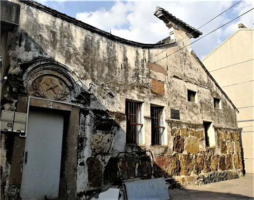 18.灵官庙弄郭宅,原位于天宁区椿桂坊社区灵官庙弄10-12号,建造于1936年,坐北朝南,是常州民国时期中西结合形成的典型建筑。2018年实施了灵官庙弄郭宅迁移工程,移至与原址一墙之隔的市一中园内。