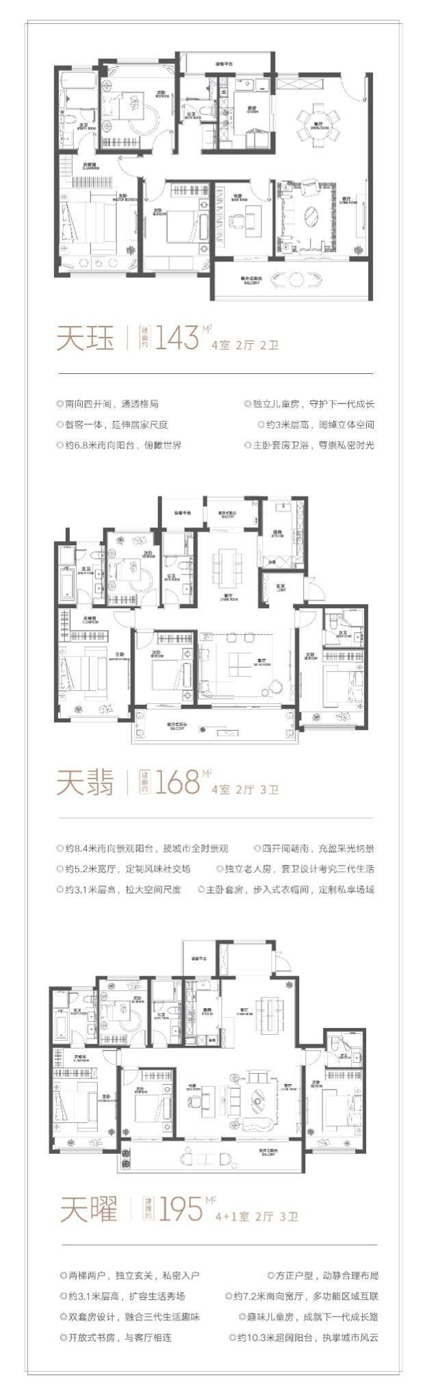 例如143-190㎡天空宅的打造,就是家族式生活的理想产品。无论是较大约10.3米的超阔阳台,追求的是优质的南向采光面,还是较大约7.2米LDK餐客厅,更是家族式生活中岛枢纽,亦或是阔绰尺度双套房设计、独立衣帽间设计,承载了家族成员各自私密生活域场。